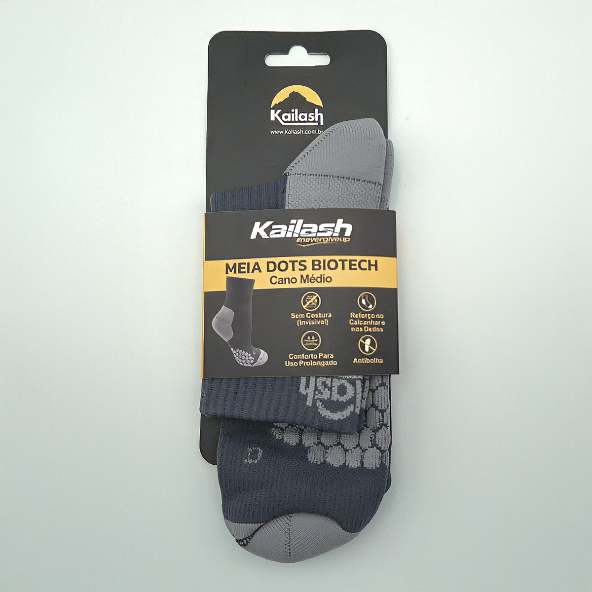 A Nova geração da Meia DOTS Biotech Cano Médio está ainda mais impressionante, e disponível em 3 cores: preto com cinza, chumbo com cinza, chumbo com verde limão.